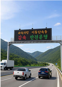 안전 운행 유도: 기상 악화(폭설, 결빙 등) 시 감속을 유도하거나, 돌발 상황 발생 시 주의 문구를 표시하여 2차 사고를 예방합니다.