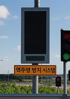 시각 및 청각 경고: 역주행 차량이 감지되면 즉시 현장의 운전자에게 경고하기 위해 경고음(사이렌)이 울리고, 전광판(VMS)에 "역주행" 또는 "진입 금지"와 같은 경고 메시지가 표출됩니다.