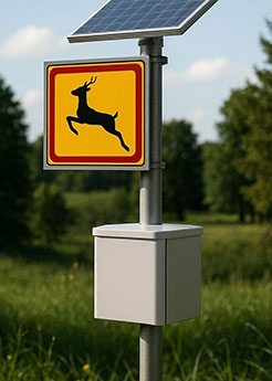 도로변에 설치된 센서가 야생동물을 감지하면 경고음이나 경고등을 울려 동물이 도로에 접근하지 못하도록 유도합니다.